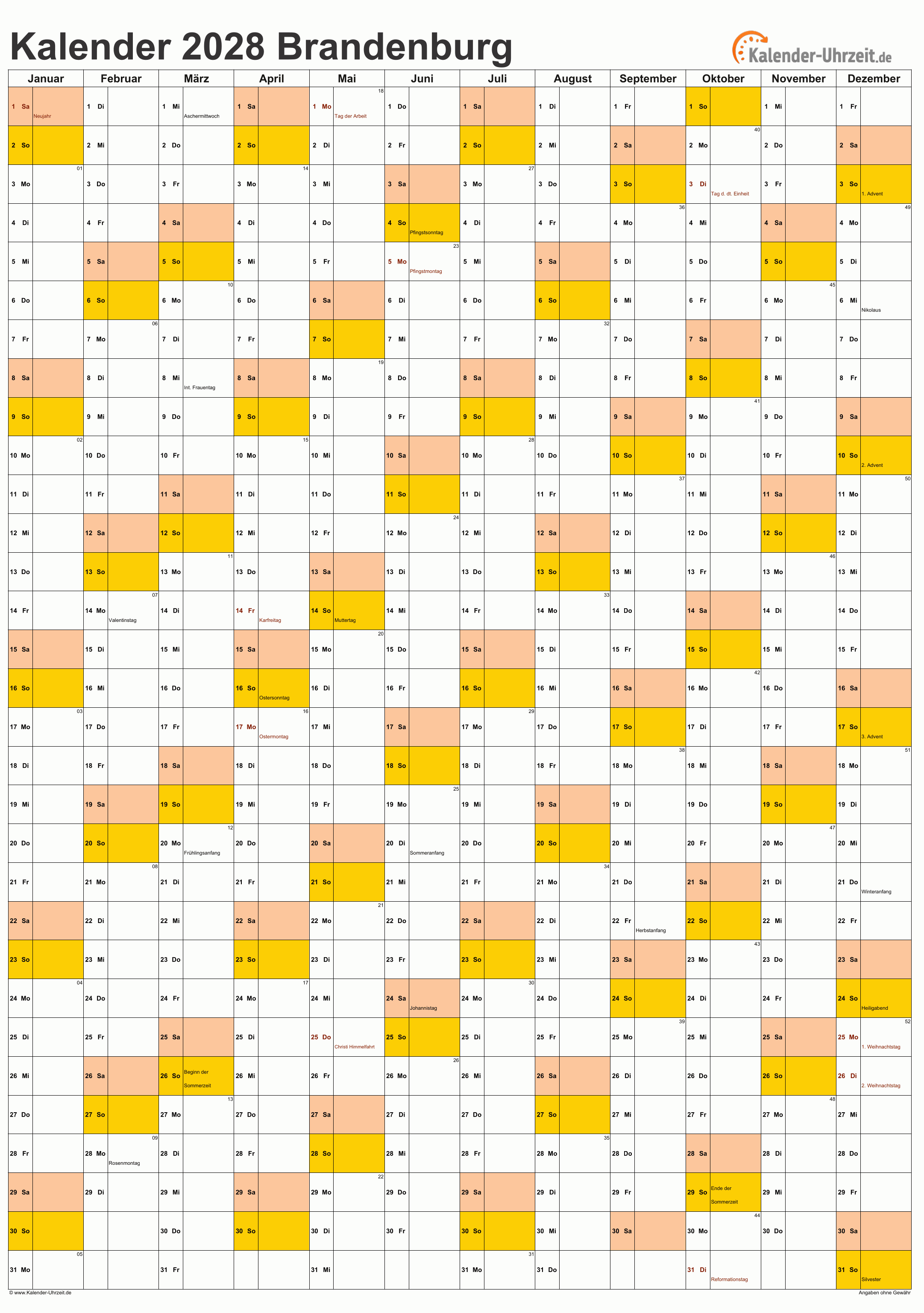 Feiertage 2028 Brandenburg: Kalender zum Ausdrucken
