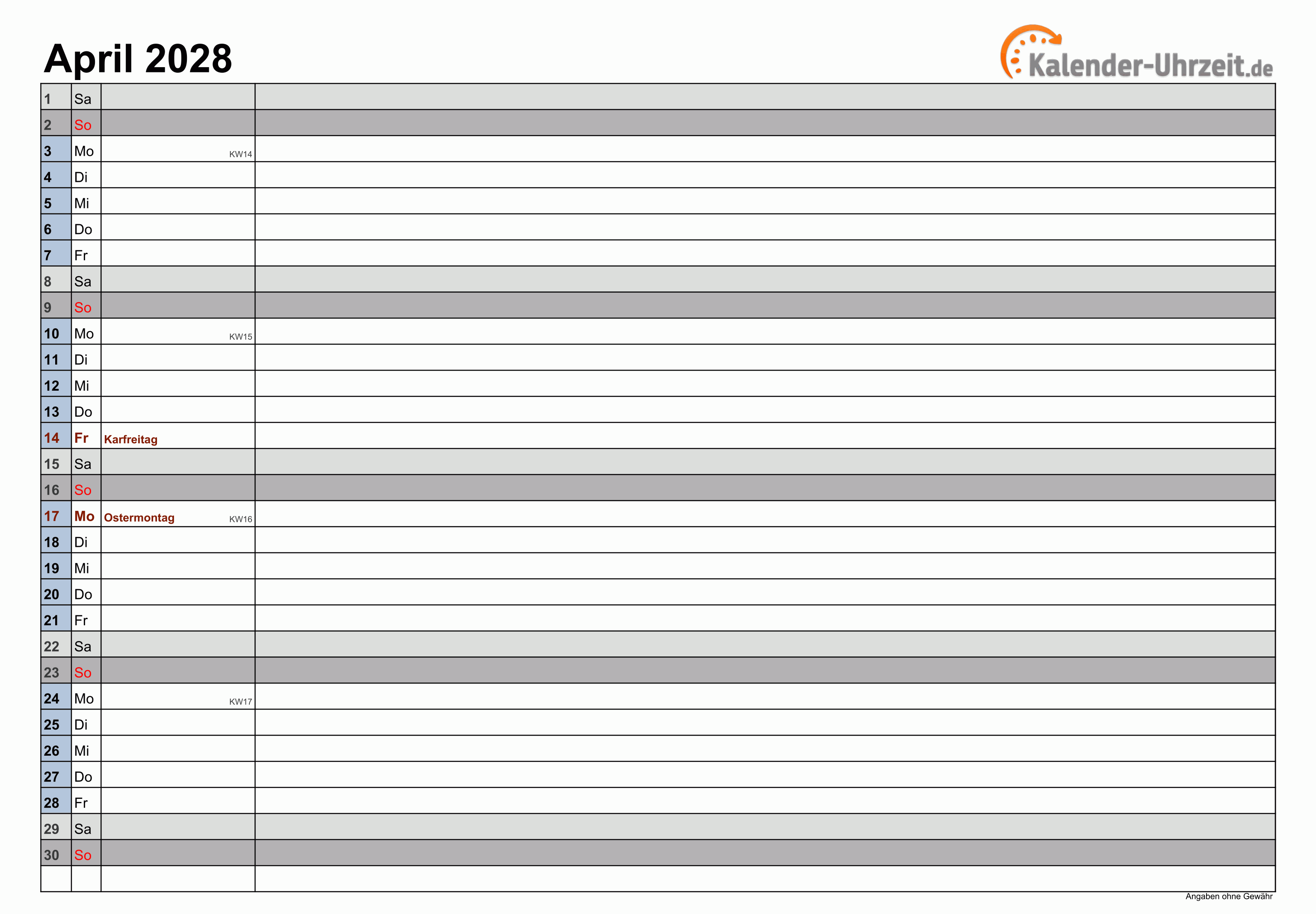 | 03.04. - 15.04. | Osterferien 2028 Schleswig-Holstein | 9 | 1 | 15 | noch 832 Tage |