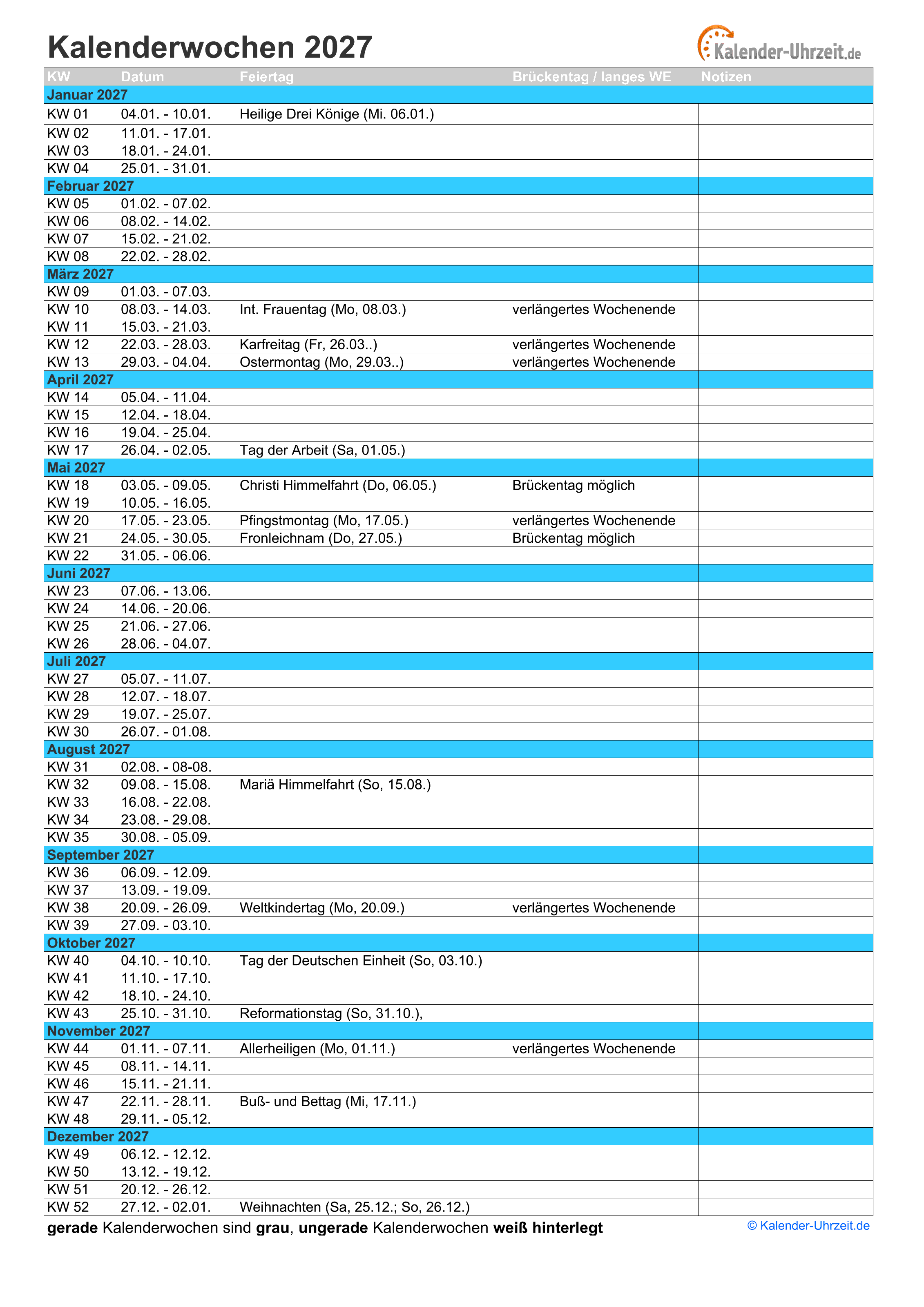 Kalenderwochen 2027